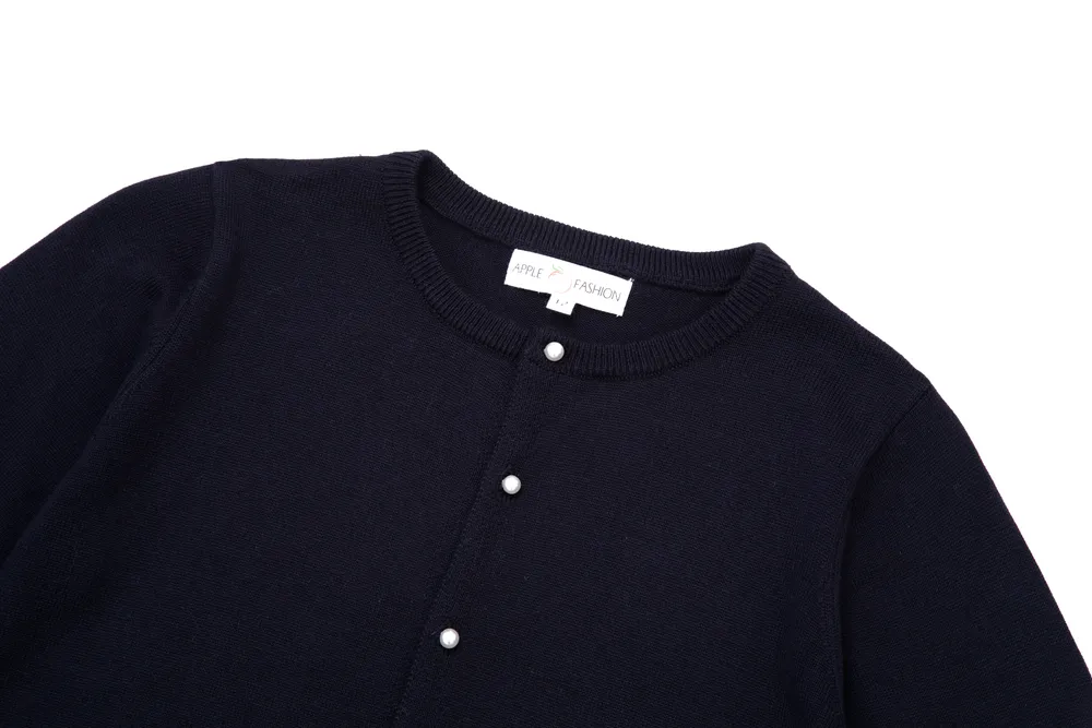 סריג כחול עם כפתורי פנינה גם בשרוול