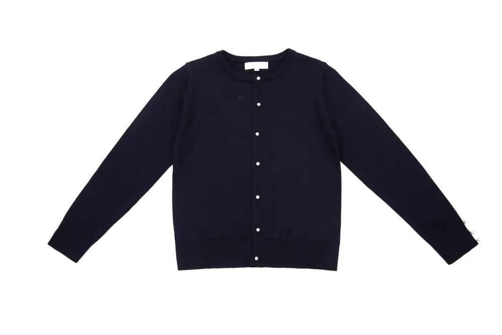 סריג כחול עם כפתורי פנינה