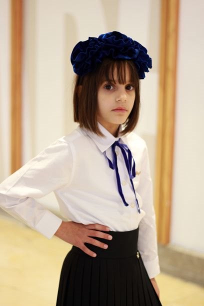 חולצה לבנה סרט קטיפה נייבי מידות 6-20