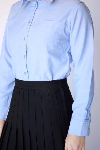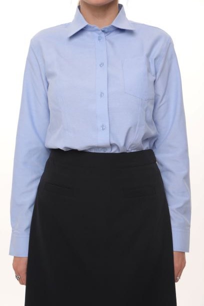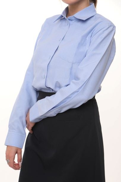 חולצת תלבושת מכופתרת עם כיס בצבע תכלת