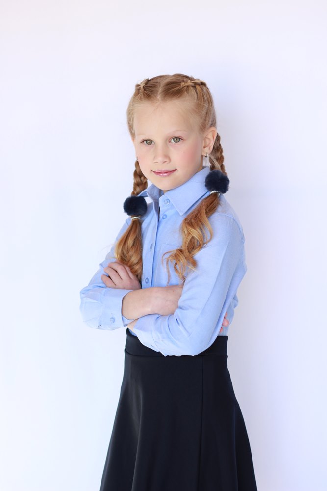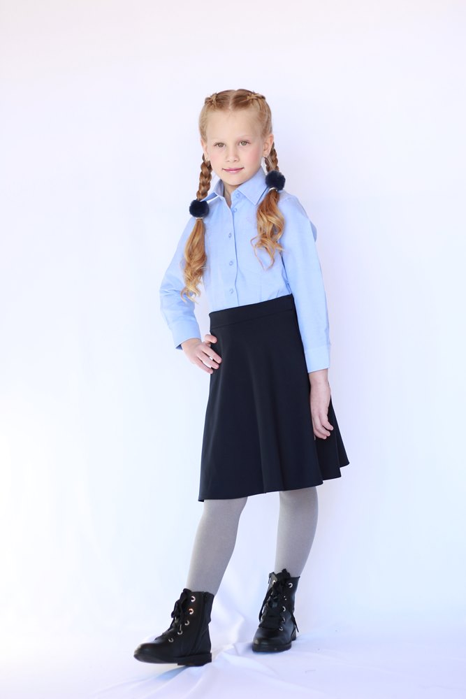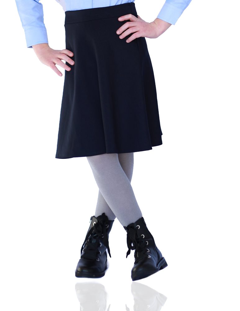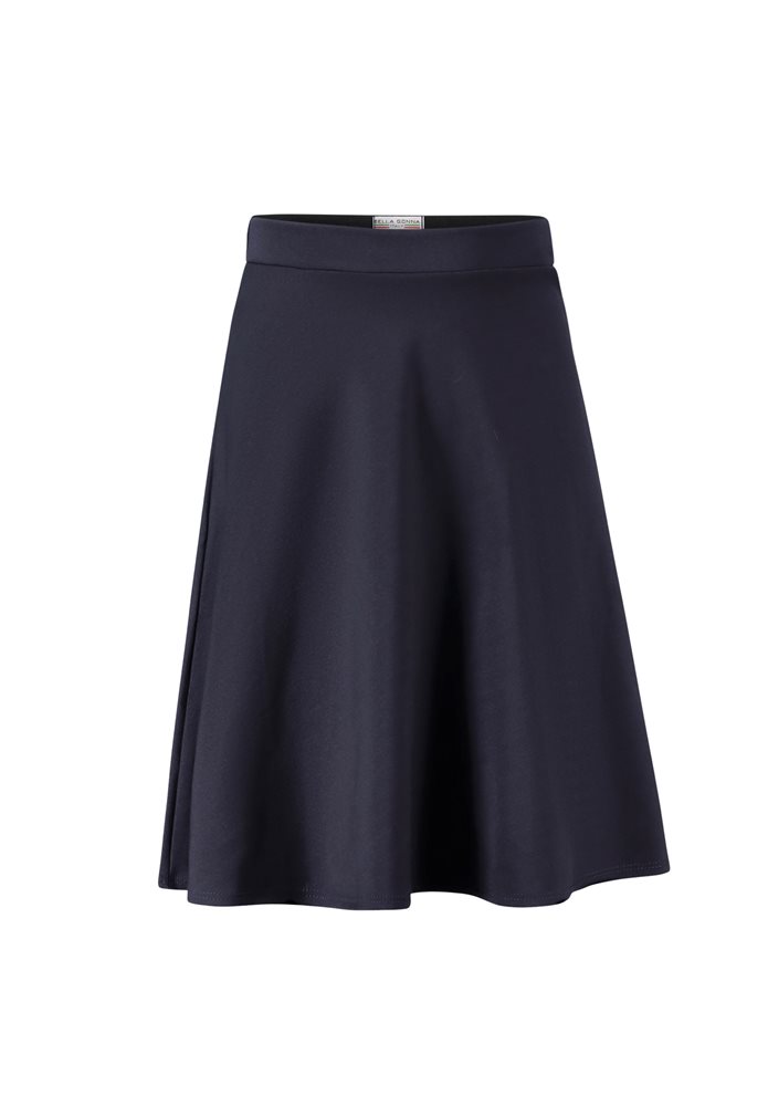 חצאית כחולה לבית הספר בגזרת חצי קלוש, בד גמיש ואיכותי בסגנון אירופאי