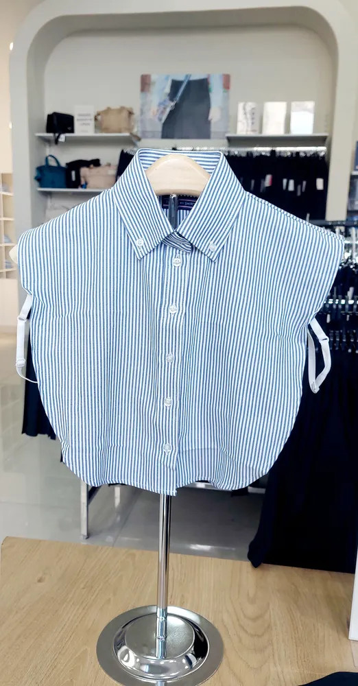 צווארון פסים תכלת לבן עם כפתורים בצווארון