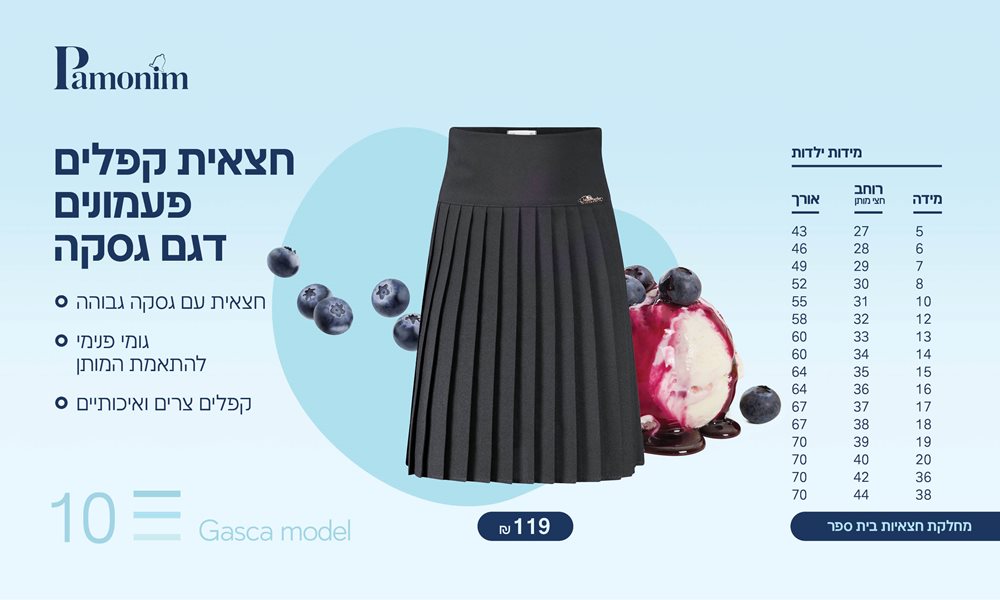 חצאית עם גסקה גבוהה וקפלים רודפים של המותג "פעמונים"